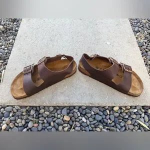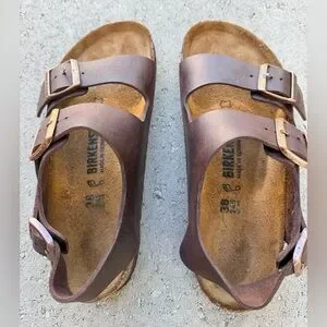 Classic Birkenstock Milano sandals in Habana oiled leather in size 38 with regular/wide footbed. Birkenstock oiled leather has natural variations and patinas. These have been lightly used, but are too big for me. They fit true to size for a Birkenstock 38 which is larger than a traditional 38. Please see pics for details of leather, insole, an outsole condition. These have a ton of life left for someone who wears a 38!