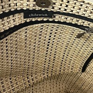 Chilewich Woven Black and Cream Tote Leather Handles Pocket Luxury Beach Bag