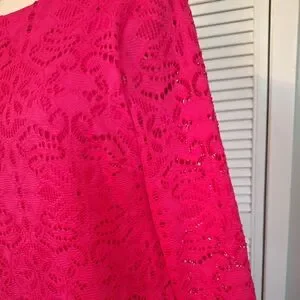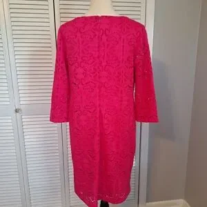 Step out in style with this elegant pink lace dress. Perfect for any occasion, this dress offers a flattering fit and a touch of sophistication. made by chico's. zipper back with 3/4 sleeves. size is 1, which is a 10 medium. see size chart. excellent condition
