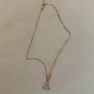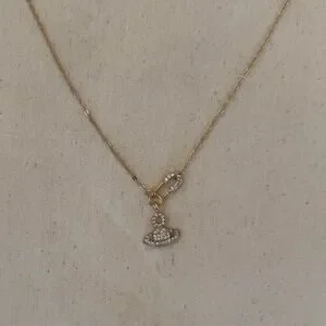 y2k 2000s vintage retro style rose gold iced out planet chain necklace