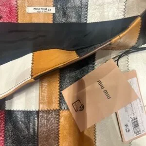 Miu Miu Multicolor Patchwork Leather Mini Skirt lamb leather midi short Italy