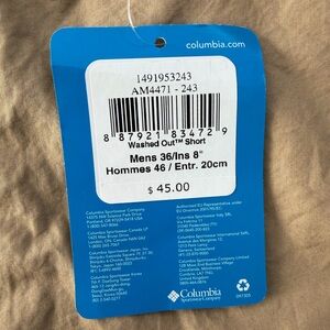 Columbia Washed Out Men’s Shorts Khaki Beige Size 36 NWT