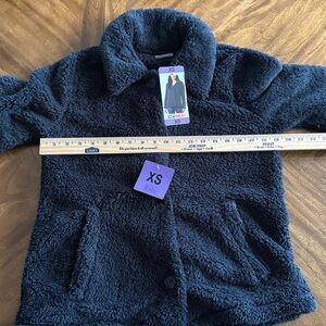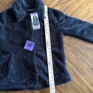 32 Degrees Women’s Button-Up Black Fleece Jacket with pockets, XS NWT Cozy