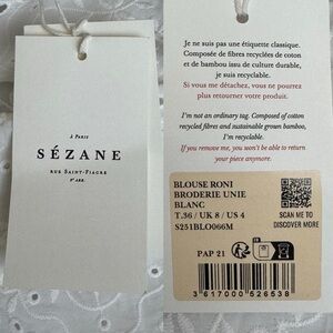 NWT Sézane Roni Embroidered Tank Top Blouse White Size: 36 (S, 4)