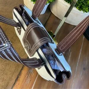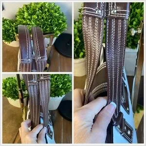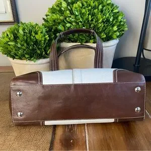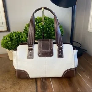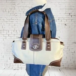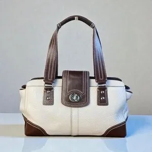 2009 Coach Hampton White Chocolate Brown Turnlock Satchel Shoulder Bag