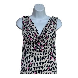 Diane von Furstenberg Geometric Print Cowl Neck Sleeveless Silk Dress Size 4
