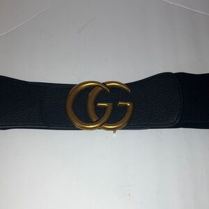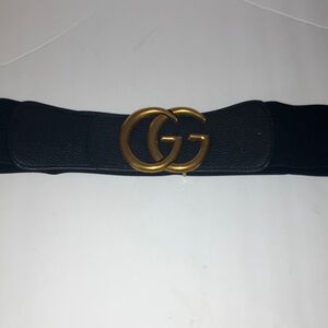 Elegant women's belt featuring a striking gold buckle with a GG. Perfect for adding a touch of sophistication to any outfit.