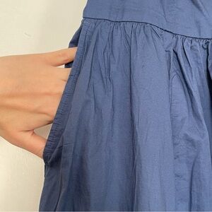 Chic blue midi dress with a flattering fit. Features convenient pockets. Perfect for versatile styling. Fast shipping!