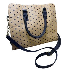 2/$15 ❄️ Rossetti Womens Polka Dot Tote Purse Blue Tan Crossbody Gold Hardware