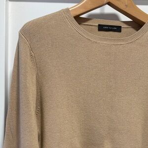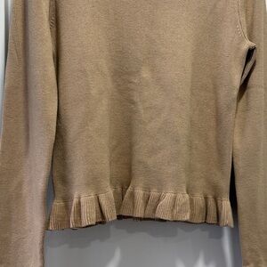 Ann Taylor Tan Crew Neck Ruffle Hem Long Sleeve Sweater Top Size Medium