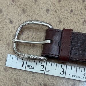 TEXAS Leather Mfg. Black and Brown Western Leather Belt with Silver Accents M/L