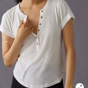 Pilcro Ribbed Henley Tee Any way you button it, the Andie is essential. Crafted