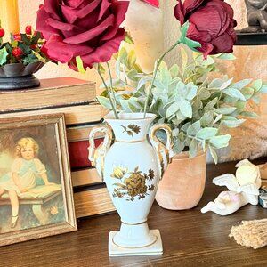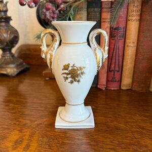 Neoclassical Porcelain Chinoiserie Vase gold and white.