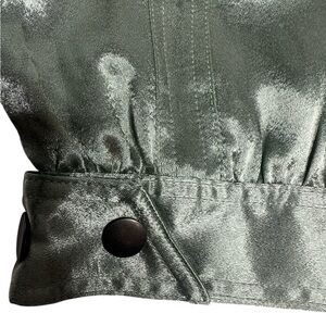 Crafted from soft vegan satin with a reflective silver finish, they blend edgy moto streetwear with feminine futuristic vibes. Perfect for holiday outfits, festival looks, night-out styling, model-off-duty fits, or Y2K metallic trends. Pair with a cropped jacket, chunky boots, a fur coat, or ballet flats for the exact Free People campaign look. Features: • Metallic shimmer satin • Cropped ankle length • Moto seam detailing • Vegan material • Snap cuff detail • Double button waistband • Utility pocket details • High rise • Free People rarity, collector piece