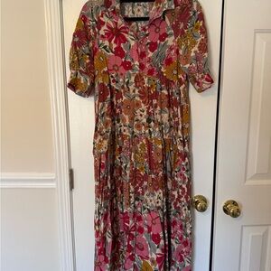NATURAL LIFE Pink and Brown Floral Maxi Dress