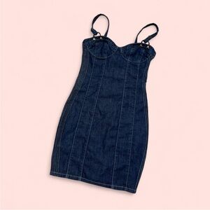 guess, denim dress, bustier dress, corset dress, lace up back, mini dress, y2k, 2000s, bratz, mcbling, bodycon, sexy, statement