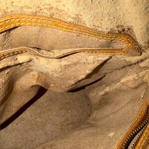 Vintage LV monogram bucket. Sadly the interior has disintegrated and the stitching is worn on the handles. The exterior is in good condition for someone to repurpose.