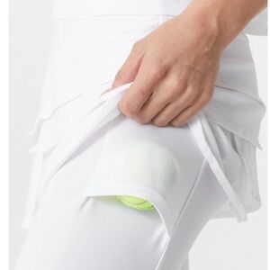 For those cooler days and nights, choose the Lucky in Love Scallop Skirt Capri to help keep you warm on the courts! It features an elastic waistband, cute mesh layered tiers, and built-in capri tight.