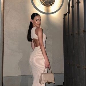 NWT Meshki Marlisa Ribbed Knit Backless Midi Dress in Nude Colorway