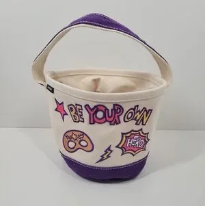 Lands' End Purple Handle Hero Embroidered Small Canvas Bucket Tote Bag. In good preowned condition. See all pictures for details. One day processing