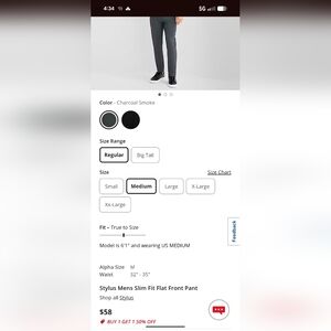 Stylus Men's Charcoal Gray Dress Pants Slim Fit Flat Front 32 X 30 Business