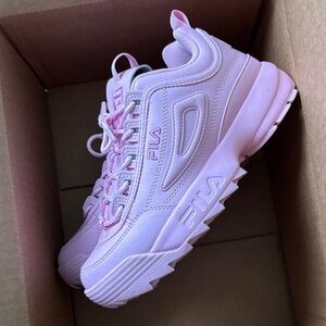 Pastel pink FILA sneakers. Very cute! I did wear them a few times but they are in great condition.