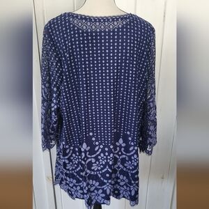 Isaac Mizrahi Women's Lined Blue Lace Blouse