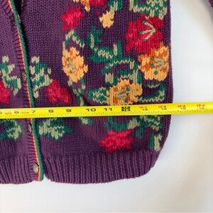 Vtg Robert Scott Women M Cardigan Knit Sweater Purple Floral Grandmacore Cottage