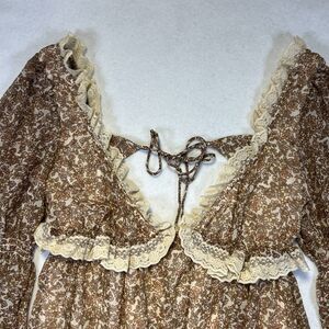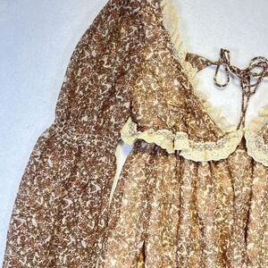 Free People Womens Beige Pennie Floral Ruffle Long Sleeve Mini Dress Size S