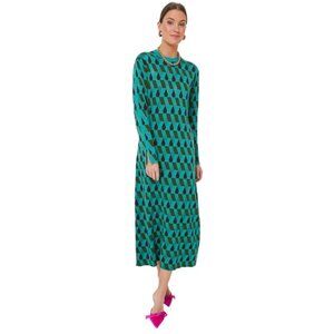 NWT La DoubleJ Diamonds Jacquard Knit Maxi Dress Womens Large Green Crew Neck
