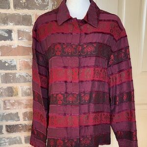 Coldwater Creek Burgundy Velvet Trim Hidden Button-Up Oversized Shirt Sz XL
