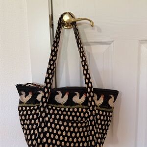 Charming Vera Bradley Roosters and Eggs Black and White Tote Bag
