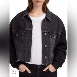 AllSaints Anders Mixed Media Crop Jean Jacket