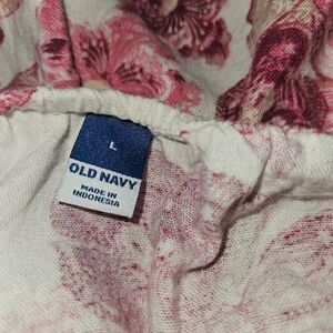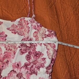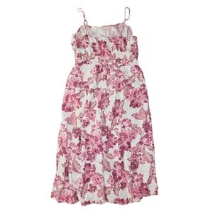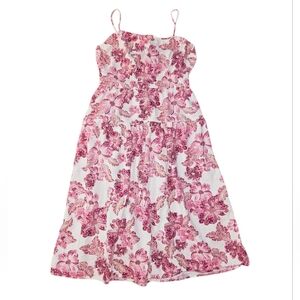 Linen Blend Floral White Pink Summer Dress Women's L