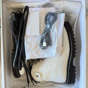 These ankle snow boots feature a heated insole that's activated through a bespoke mobile app. The device is charged by a USB cable, cleverly hidden under the hand-tooled collar, and temperatures can be set from 25° to 45° C. The heated soles last up to eight hours before they'll need to be charged again. A shearling lining creates added warmth.