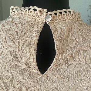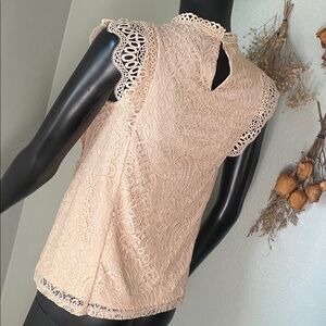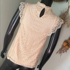 Elegant lace blouse with intricate cap sleeves. Ideal for sophisticated events. NWTs