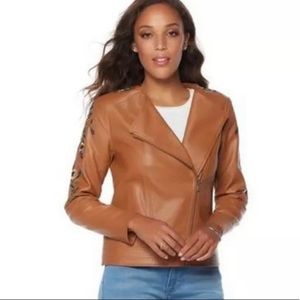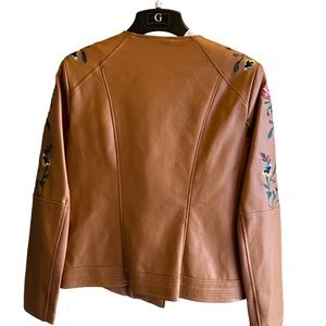 Bohemian luxe floral embroidery vegan leather Moto jacket. Pristine condition. Size medium
