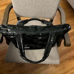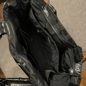 Excellent condition. Used only for extra clean clothes to go back-and-forth to my daughter’s house to babysit. No gym clothes so no odor. Chic and lightweight. Spacious and stylish. Measures approx 15”L (at base), 19”L (at top) x 13”H x 6”W with a 9.5” strap drop. Numerous pockets. Top zip closure. MSRP $80. Comes from a smoke free home.