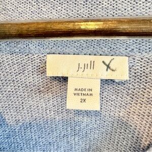 Cozy Minimalist J Jill Shawl Collar V Neck Sweater Tunic Light Blue 2X Coastal