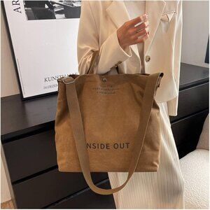 Features: Made from 100% cotton canvas, this tote has a sleek letter-print design and a magnetic button opening. Comes with a long shoulder strap for hand, shoulder, or crossbody wear, plus three back pockets and three effects for maximum functionality. Perfect for errands, work, or casual outings.