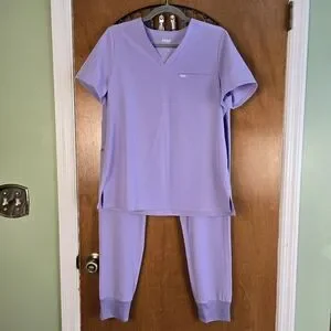 Catarina One-Pocket Scrub Top and Zamora Jogger Scrub Pants in the color Lavender Dew.
