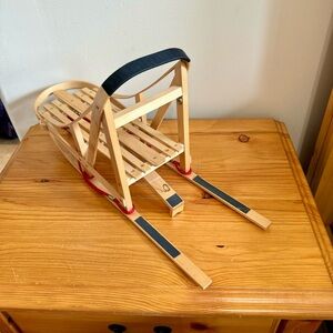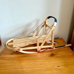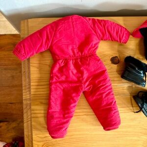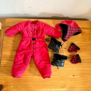 American Girl Bred to Sled and Sled Ahead Set. Vintage 1990s 90s. Released in 1997. Comes with wood sleigh, husky dog, cog accessories, and red padded snowsuit outfit. Hat mittens shoes. Everything seen is included except the doll itself.
