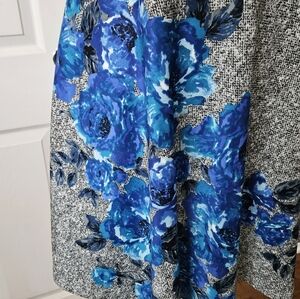 Betsey Johnson Gray and Blue Floral Fit And Flare Dress