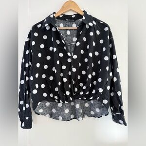 Zara Linen Blend Polka Dot Blouse, size medium.