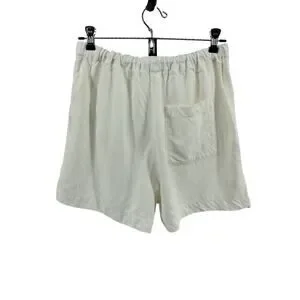 Off-white twill shorts from Loulou Studio featuring an elastic waistband and a single patch pocket. This garment features relaxed silhouette.