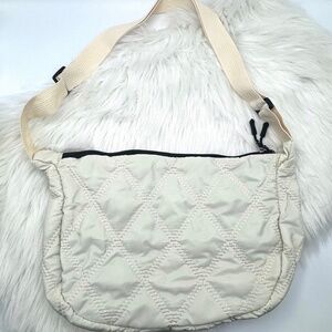 Quilted Nylon Crossbody Hobo Bag in Cream