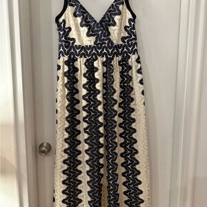 Stylish maxi dress with a wavy black and cream pattern. Perfect for elegant occasions. Size 12