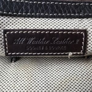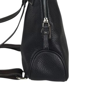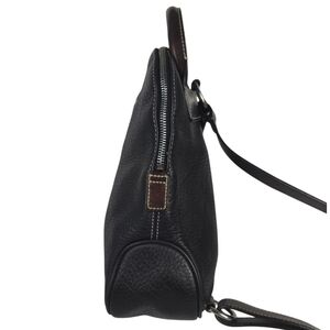 Authentic vintage black pebbled leather backpack by Dooney & Bourke All-Weather Leather, features a rounded top, sturdy handle, and straps.