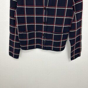 Ann Taylor Cardigan Sweater Windowpane Check Red Blue Button Down Career Size MP