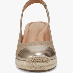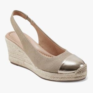 EASY SPIRIT MARGIE NWT Size 8.5M Women's Gold and Tan Wedge Slingbacks
